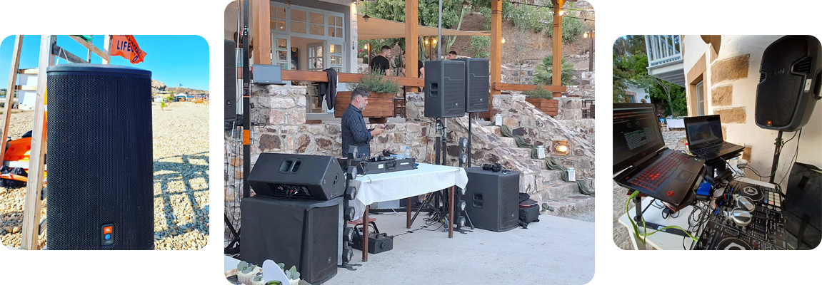 την πλήρη ενοικίαση, εγκατάσταση και ρύθμιση επαγγελματικών ηχοσυστημάτων για κάθε είδους εκδήλωση: γάμους, βαπτίσεις, πανηγύρια, συναυλίες, εταιρικές παρουσιάσεις, πολιτιστικές εκδηλώσεις και ιδιωτικά πάρτι. Κάθε έργο ξεκινά με μελέτη του χώρου, ώστε να επιλεγεί ο κατάλληλος εξοπλισμός και η σωστή διάταξη των ηχείων.