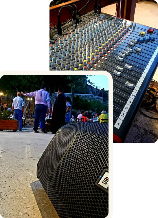 αντιμετωπίζουμε την ηχητική κάλυψη ως μια ολοκληρωμένη τεχνική διαδικασία που απαιτεί μελέτη, εμπειρία και εξειδίκευση. Καλύπτουμε με επιτυχία εκδηλώσεις σε Πάτμο και σε όλη την Ελλάδα, κατόπιν συνεννόησης, παρέχοντας αξιόπιστες λύσεις προσαρμοσμένες στις απαιτήσεις κάθε χώρου.